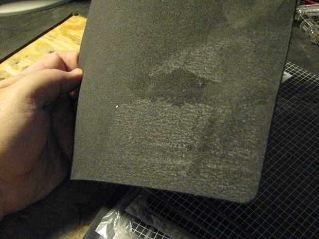 Por lo tanto, decidí que me gusta mejor la superficie posterior. Lo que hice para mi escritorio es cortar esa capa barata. Usted tiene que ser sin piedad sobre esto o no trabajar - obtener una esquina comenzó entonces RIP! Si tratas de hacer pedazos un poco a la vez el neopreno va a rasgar y tendrás chatarra.