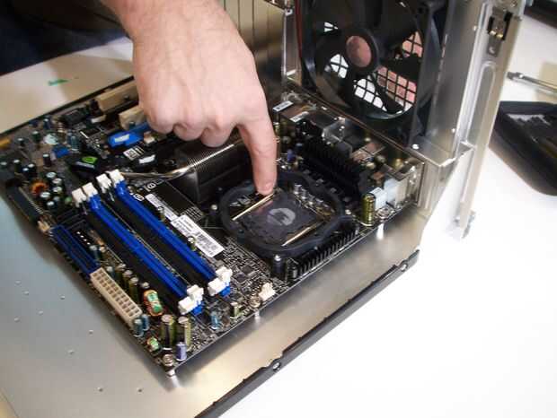 Para instalar el chip, localizar el zócalo de la CPU en la placa base. Retire el brazo de retención, empujando hacia abajo luego mueve ligeramente a la derecha ahora levántelo. Retire la cubierta protectora.