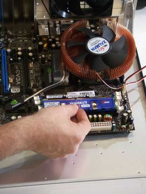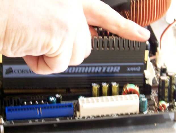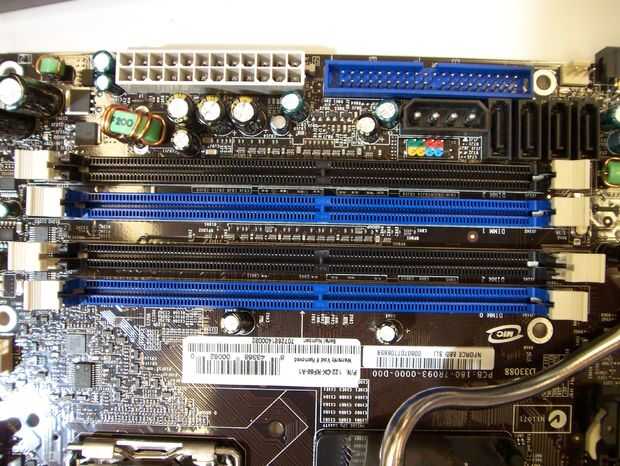 Inserte código de color, en este caso, un sistema en los zócalos azules el otro en el negro. Alinee las muescas en la memoria ram las muescas en el zócalo; empuje hasta que "encajen" en su lugar.