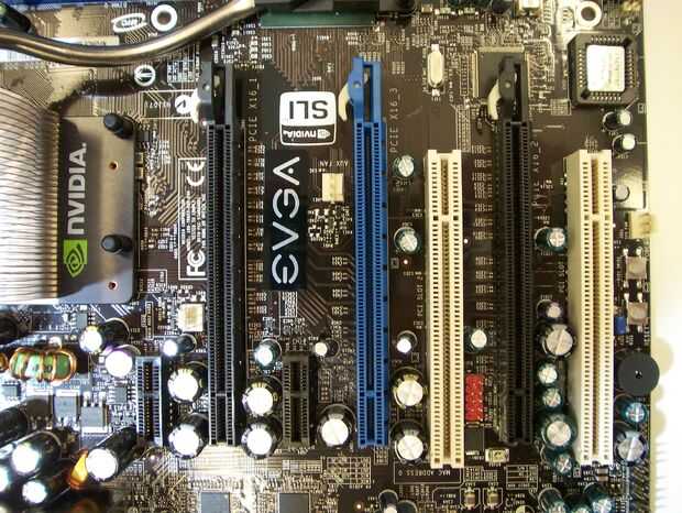 Con cuidado coloque la tarjeta entre las 2 tarjetas gráficas y asentarla en la ranura pci blancos. Alinee las muescas y empuje hacia abajo. Es un calce para esta plataforma, pero apenas cabe.