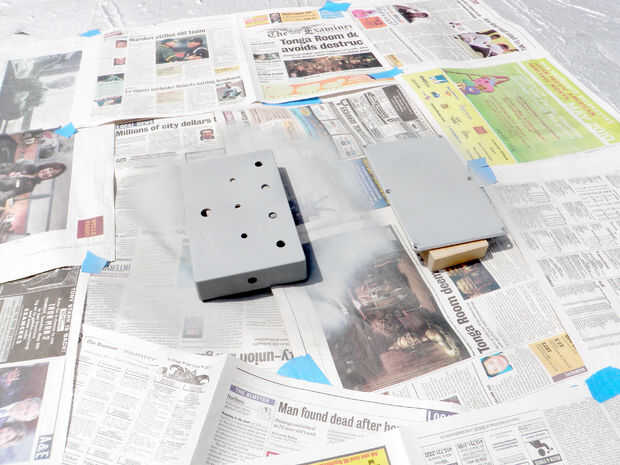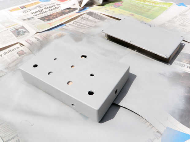 Rocíe uniformemente el exterior de la caja con una capa de imprimación para evitar la oxidación.