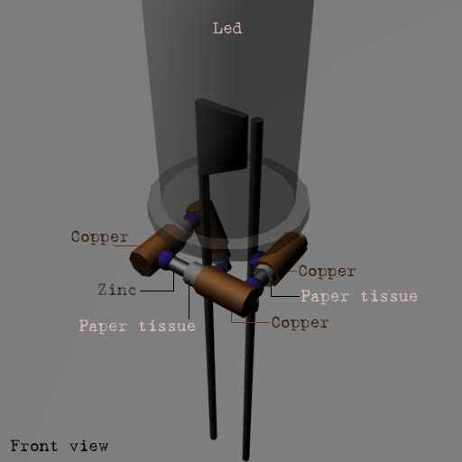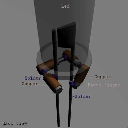 Cada uno es un pedazo largo de 0,4 mm de alambre de cinc, con un papel de tejido alrededor de él y un pedazo pequeño de cobre alrededor del papel.