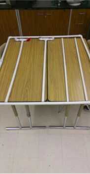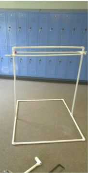 En primer lugar, hicimos una estable base conectando juntos cuatro tubos de PVC de la misma longitud.