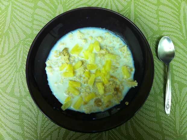 Decidí añadir rodajas de piña con una taza de fruta (agotada) en el último minuto. Estaba sabroso; sin embargo, secado hacen frutas que guarniciones la mejor avena.