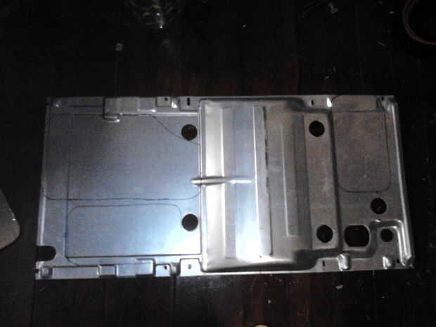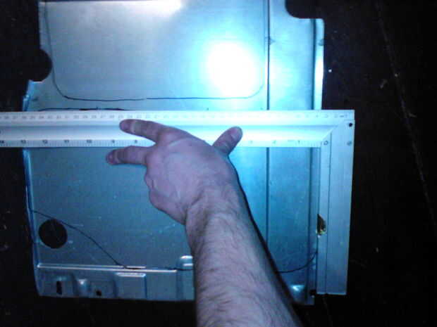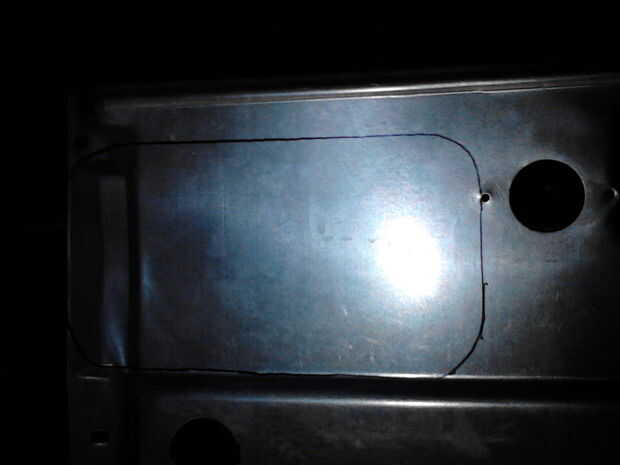 Ahora es el momento para transferir el diseño sobre la chapa. Sólo Coloque la plantilla de cartón en la hoja de metal para que haya la menor cantidad de desechos y trace con un marcador.