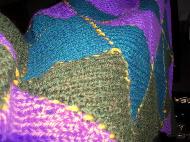 Mi manta es un tamaño de la manta de bebé, pero el mismo patrón podría tamaño para arriba fácilmente (a) cambiando el número de puntadas o (b) usando el hilado más grande.