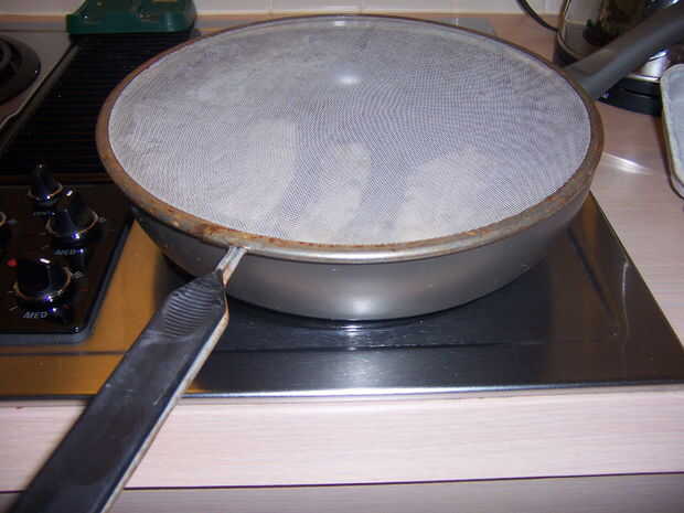 Si tienes una pantalla de salpicaduras, yo le aconsejo que utilice uno. Cuando el tocino se cocina, poner sobre unas toallas de papel para absorber la grasa, pero no vaciar la bandeja de la grasa. Usaremos para freír los huevos y hacer la salsa.