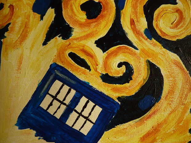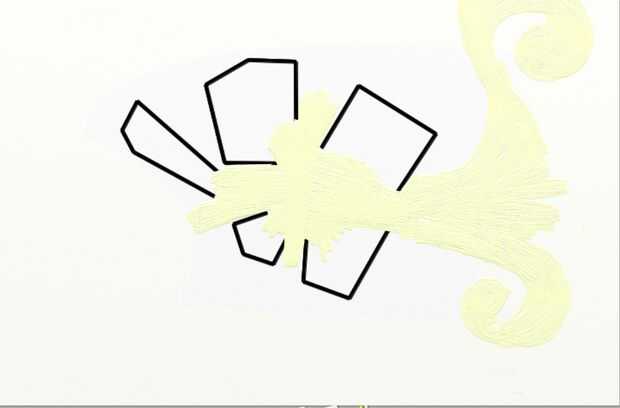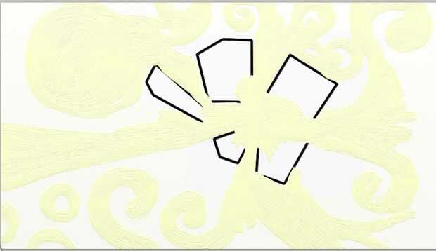 Mantener la pintura en la dirección de la explosión con la pintura amarilla luz y llenan el espacio vacío con remolinos, áspero siguiente el cuadro de referencia. Realizar todo tipo de remolinos, grandes, pequeños, realmente swirly, no tan swirly, que todo es posible!