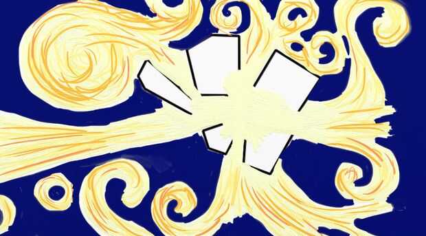 Combinar la pintura azul oscurezca con la pintura negra. Cuidadosamente entre los varios remolinos de la explosión de la pintura y evitar la pintura en la parte de Tardis bosquejada.