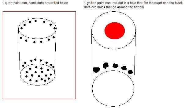 6. perforar agujeros en el cuarto de galón pueden como en mi imagen de la pintura.