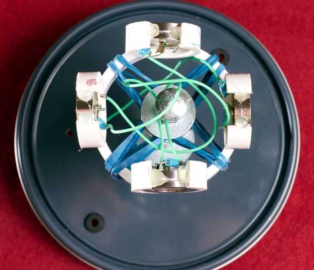Ahora la forma de montar todo el asunto... Como se mencionó antes, empecé con una lata de pintura de 1 cuarto de galón. Y, absolutamente no funcionó hacia fuera. Sin embargo hizo probar el concepto y me dan vivienda para probar otros diseños. No todo estaba perdido. Uno de los retos de la lata de pintura original fue posicionando las cápsulas sin tocar nada. Queremos aislar golpes y ruidos. Para conseguirlo para ajustar la unidad de la cápsula tocó el tablero de PC. Que ha recogido demasiada vibraciones y ruidos. Con el más grande pintura funcionaba.