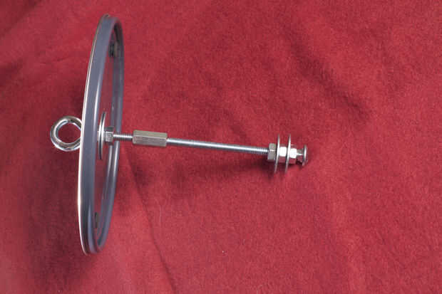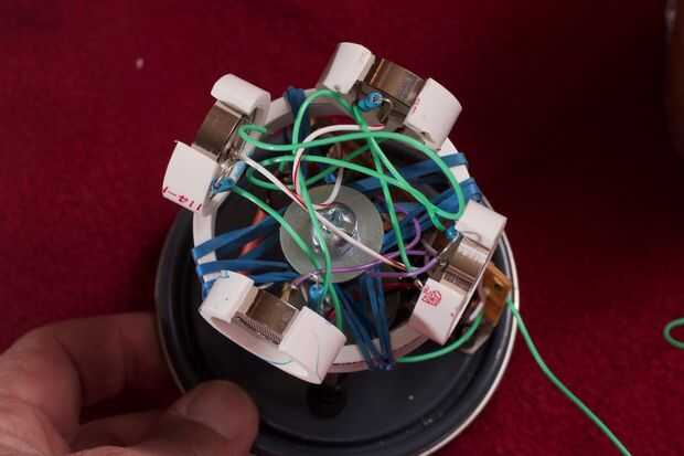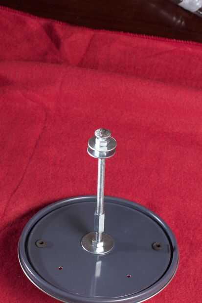 Me quité la tapa y perforó un derecho de agujero en el centro, otros dos agujeros para los cables (uno para el audio) y uno para la energía y dos para montar el tablero de PC. Para la entrada de alambre, usé tapones de hule para proteger el cable. Lowes las vende también. Para montar las cápsulas usé un perno de ojo de ¼ -20. Solo pude encontrar uno que era 2" de largo. Así que entonces añadido 1/4 - 20 enfrentamiento como una "extensión". Esto con un perno de carruaje de 4" me permitió colocar el ensamblado cápsula sobre la placa PC y aislarlo con un montón de bandas de goma. Entonces usando tres tuercas y dos arandelas que forman un lugar para conservar todo el caucho de las bandas y coloque el montaje de la cápsula.