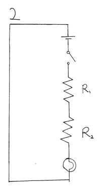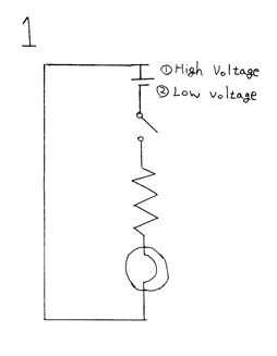 1. la figura de dos primeras representan el circuito real que corresponde a la estructura de la derecha. Tiene una fuente de voltaje, un interruptor, una bombilla y una resistencia. Puede utilizar diferentes resistencias.