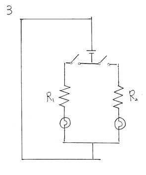 3. los dos resistores están ahora conectadas en paralelo. Apagando el interruptor, usted puede comparar con el modelo 1, que tenía una resistencia. Este modelo muestra cómo fluye la corriente a diferentes resistencias conectadas paralelo. También usando el interruptor, usted puede decir lo que puede ocurrir en circuitos reales con interruptores
