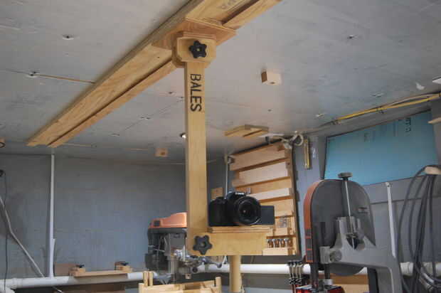 Quería una solución que no sólo mantendría la cámara fuera de mi área de trabajo al eliminar el trípode, sino que también permitiría que las opciones de ángulo ilimitado (al lado de herramientas, detrás de herramientas, herramientas, etc.). Ocurrió entonces que tenía un gran espacio sin usar por encima de mi cabeza... el techo.