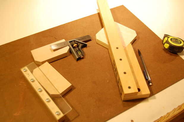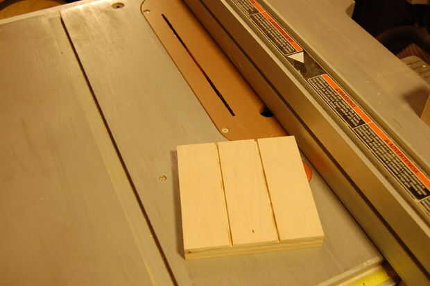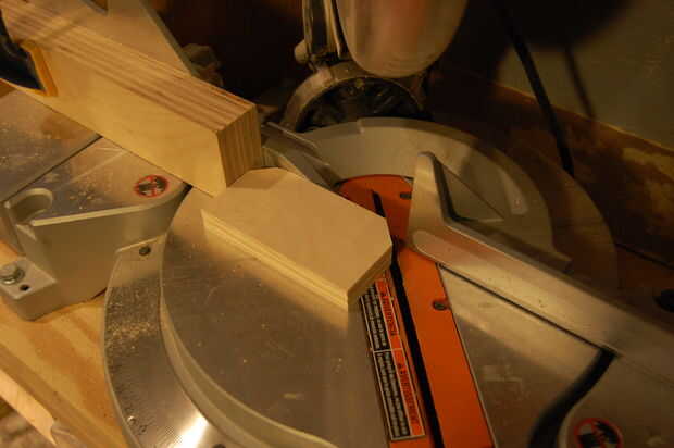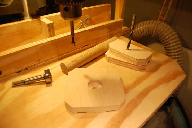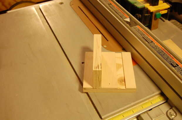 El eje giratorio está hecho de madera contrachapada de 3/4". Puesto que utiliza chatarra, fui con un cuadrado de 4 3/4" para la base. Es dejar un espacio de 1 1/2" en el centro de la varilla y luego se hacen ranuras de 3/4" a aceptar que el lado monta. Usted podría hacer esta parte sin los surcos, pero sentí esto añade cierta rigidez y facilitar la alineación. Cogió de todas las esquinas usando el inglete vieron eliminar esquinas filosas.