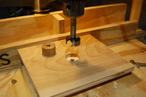 Finalmente, corte una espiga de 1 1/4" a una longitud de 3/4", encontrar el centro y perfore un orificio de 3/8" a través de él.