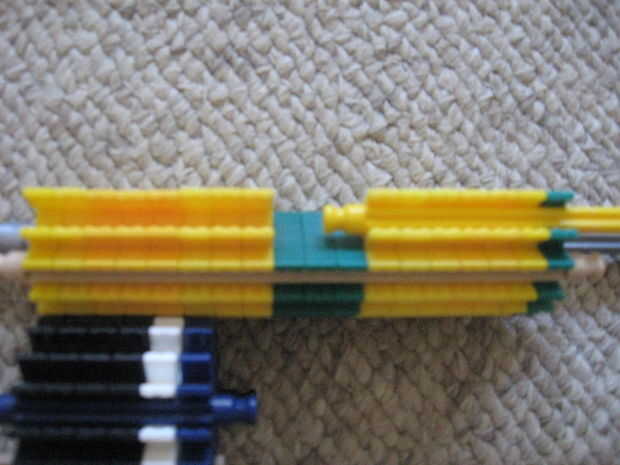 Este es un diseño de pistola goma simple y eficaz a diferencia de otras que he visto.La diferencia es que es accionado por el motor de k'nex lo que permite a múltiples bandas para dispararse simultáneamente, en lugar de hacer uno a la vez :)--No olvi