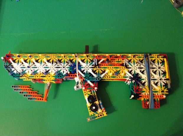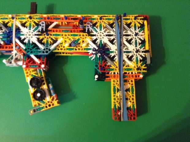 MECH Descripción: La pistola tiene dos trozos de KVG (uno vertical y uno horizontal [con el pasador de conexión] en la parte trasera de la pistola) cuando se suelta el trozo vertical golpea en la parte horizontal obligando remite (golpear la clavija adjunta a la munición) leña de la mag.