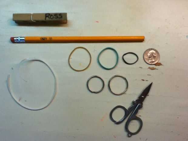 Es en realidad un arma muy simple. Todo lo que necesitas es un lápiz amarillo 2 regulares, sin filo y número, una pinza de ropa de tamaño normal, bastante nuevo, un par de bandas de goma de diámetro de 1 pulgada alrededor y un montón de pequeñas bandas como el negro. (Pongo un cuarto allí para referencia). También deben recibir un montón de llaveros. También descubrí que esa cadena plástico, llamada cordón, creo, se utiliza para tejer las cadenas dominantes (como los de Napoleón hizo infinidad de campamento scout) es realmente útil causa es más fuerte que las bandas de goma, se estira un poco y lazos apretados. Ha ser bueno tener algo de eso en la mano. Que apenas necesita cualquier tal vez, como 4 pulgadas a más. También-conseguir usted mismo algunas tijeras plegables. Puede utilizar regular, pero todo el mundo sabe doblar son mejores. No me importa lo que haces. Sólo conseguir sus manos en algunos. Vas a necesitar un cuchillo pequeño, demasiado.