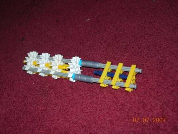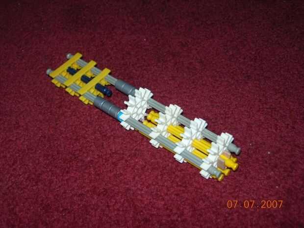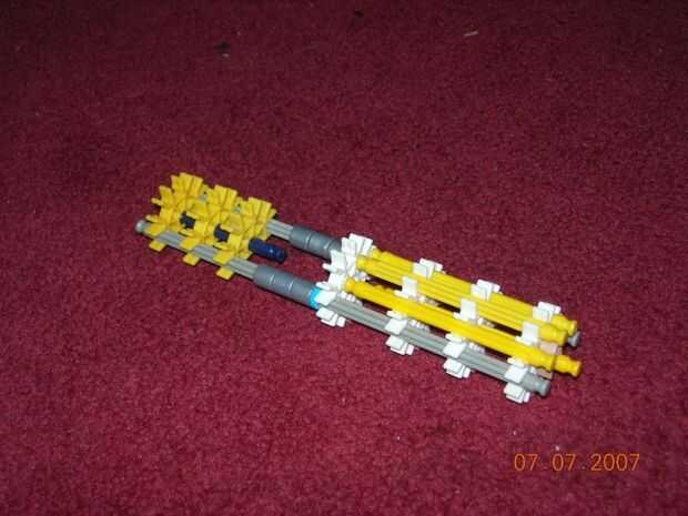 esta es un arma de KVG que usted puede hacer si no tienes muchas piezasPaso 1: Reunir las piezas para hacer el arma que vas a necesitarmango2 conectores verdes2 barras verdesbarra azul 14 conectores de púrpuraCañón3 barras rojas2 barras amarillas2 ba