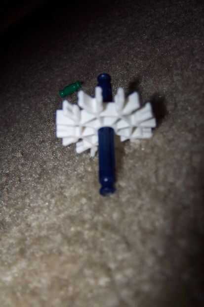 mira de mi pistola de PanteraEste arma tiene un gran concepto. El conector (en este caso pasa a ser una naranja) va por el cañón en el orificio central del conector y tire atrás, dejarlo ir, y lanza. Dispara unos 40 pies. Esta arma no tiene un dispar