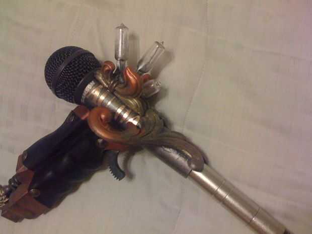 Con todo esto hecho, ahora tienes un micro poco agradable que puede hacer mal a pedacitos! Si todo fue bien hecho, esto todavía debería funcionar como un micrófono. Es divertido para mantenerlo como un arma de fuego y cantar en él. Me imagino encajaría muy bien en una banda en algún lugar :)