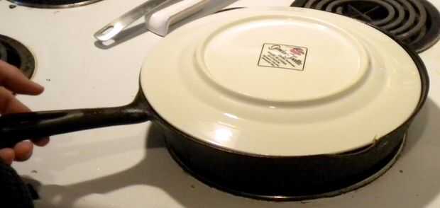 Colocar una placa que se coloca sobre la tapa de la sartén (Foto 3).