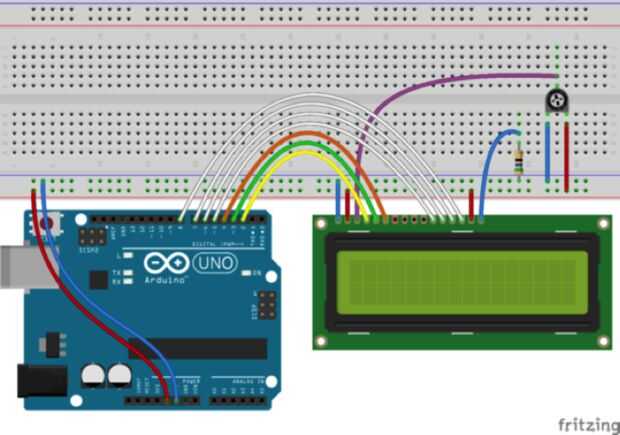 Tienes que seguir la imagen para hacer el cableado buena entre la pantalla LCD un arduino.