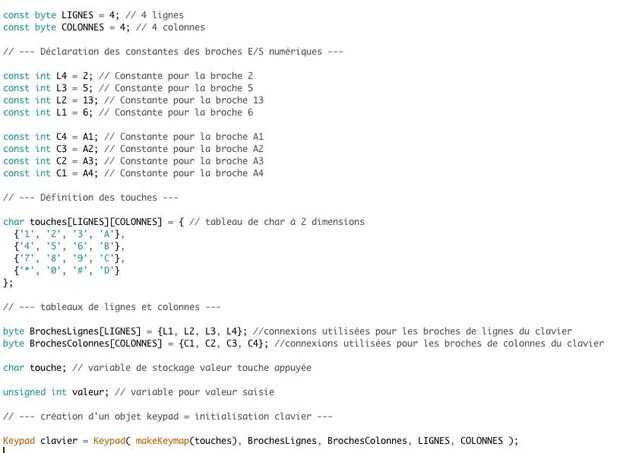 El teclado tiene 8 conexiones que 4 entradas (L1 a L4) y 4 salidas (C1 a C4).