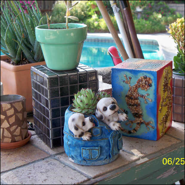 Los soportes se colocan donde sea necesario para agregar ese sentido artístico al jardín, patio bancos y así sucesivamente. Algunos quedan sin terminar, como me gusta el look de hormigón en el jardín también.