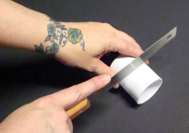 Ahora que nos hemos reunido todas las piezas necesarias y partes, vamos a cortar esto PVC! OK, haz tu Sierra para metales, Sierra japonesa, cortatubos, o sierra para cortar ingletes y corte... oh, esperan un minuto... Agárrate... mi marido me está diciendo que una vez más, me he olvidado de mida dos veces, corte una vez. Disparar, me olvide de medir en todo! Es muy típico de mí. Vamos a intentar esto otra vez...