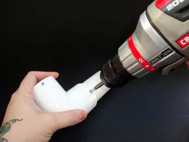 Tome la pequeña broca y taladre un orificio guía en cada uno de los extremos del acoplador diferente.