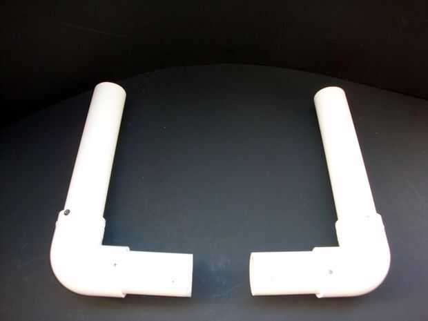 Ahora toma las piezas más pequeñas, la 3" PVC y adjuntarlo a la el otro extremo de cada uno de los codos de 90 grados. Reservar ambas piernas.