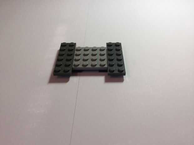 Empezar de con placa de 4 x 4 2 x 4 de poner las placas en la parte inferior. Poner poco de placa de 2 x 6 en el lado. Ahora agregar las pistas de 2 x 3 en el centro. Seguido de 2 ladrillos de 1 x 2 en el lado de las pistas. Ahora añadir las placas de 1 x 2 en la parte delantera y trasera de los ladrillos de 1 x 2. Añadir las 2 baldosas de 1 x 6 en cualquiera de los extremos