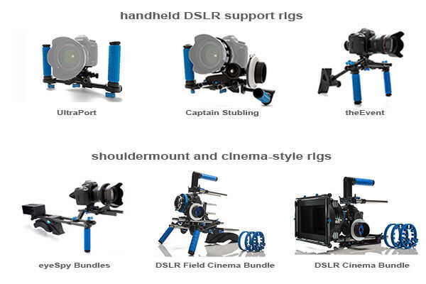 Diseños varían de mano simple, montura de hombro avanzado o dolly rigs cámara instalada así que identificar su necesidad y ámbito de uso. Foto 1 a continuación muestra algunas plataformas diferentes con la cámara del fabricante de la plataforma de Redrock, una cámara profesional. Ahora son todas plataformas DSLR, pero pueden trabajar muy bien con punto y disparar o las cámaras de vídeo.