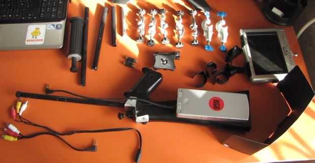Dependiendo del tipo de placa de montaje de cámara usted tiene que encontrar una manera de poner fácilmente a la unidad central de la plataforma. Mina tenía un perno pequeño pivote que conecta a la placa base (del soporte de la TV del coche) así que utilicé una pinza para sujetar el tornillo y el otro extremo las abrazaderas en el aparejo.