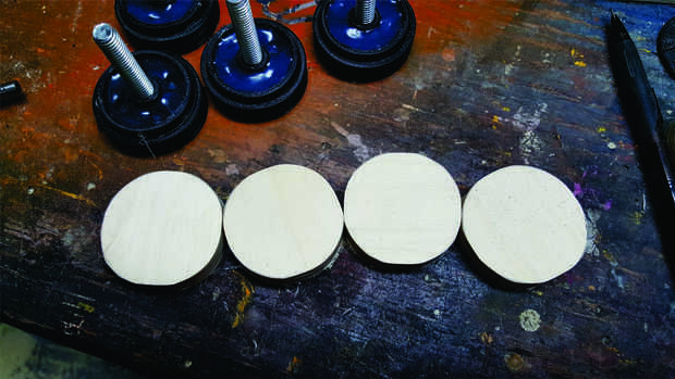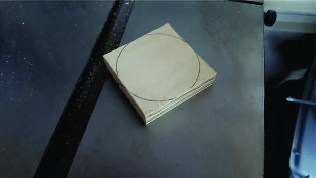Paso 1: trazar un círculo de 2 pulgadas en un 2 x 2 pulgadas pedazo de madera contrachapada.