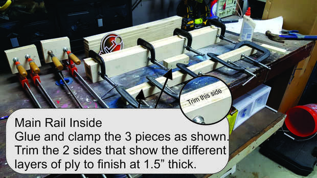Paso 3.-pegamento y fije tres piezas juntas y recortar a 1 1/2 x 30 (sólo necesita para recortar dos lados que muestran las capas de la madera contrachapada).