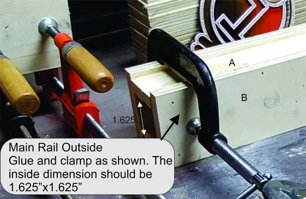 Paso 2 - pegamento y pinza las dos piezas más en el exterior de las piezas más cortas creando un 1.625 x 1.625 pulgadas dentro de la caja (ver foto).