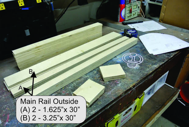 Paso 1 - cortar 2 1.625 x 30 pulgadas y corte 2 piezas 3.25 x 30 pulgadas (cortadas un poco más grandes para recortar más adelante).