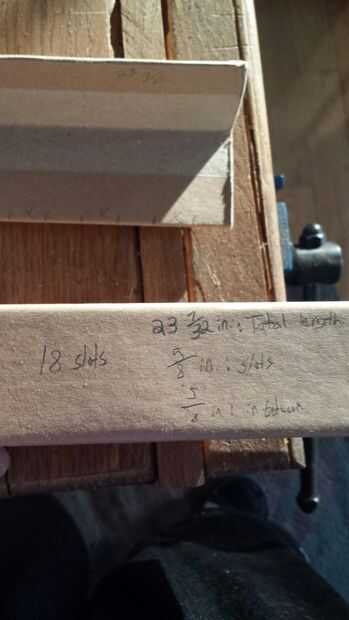 En primer lugar, usted debe obtener sus medidas. Mi pedazo de cartón es (27 7/32 pulg.) y los casos que desea usar (5/8 pulg.) por lo que algunos muy mala matemática más adelante que iguala hacia fuera para ser 19 ranuras para ser cortados y 19 espacios entre cada ranura (más los bordes)
