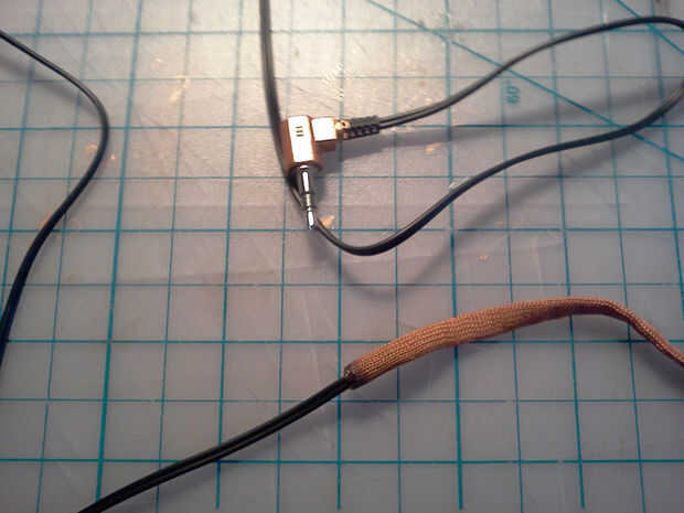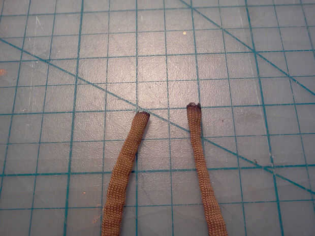 En definitiva, clip de los extremos de un cordón y quemarse ligeramente para evitar que se deshilache. Luego pase el cable por el cordón y tire firmemente a la base del enchufe.