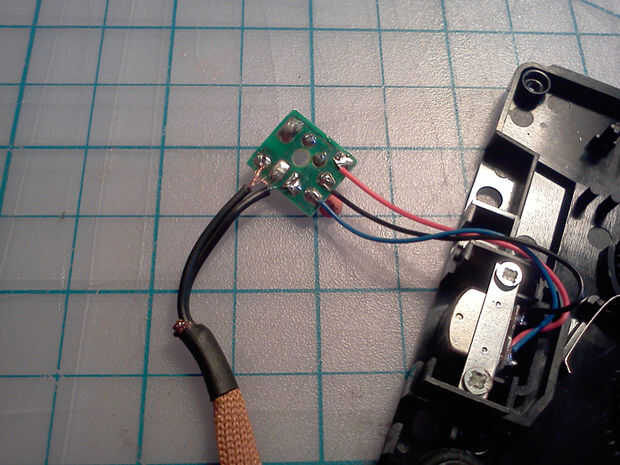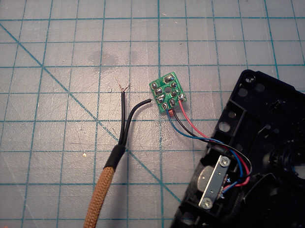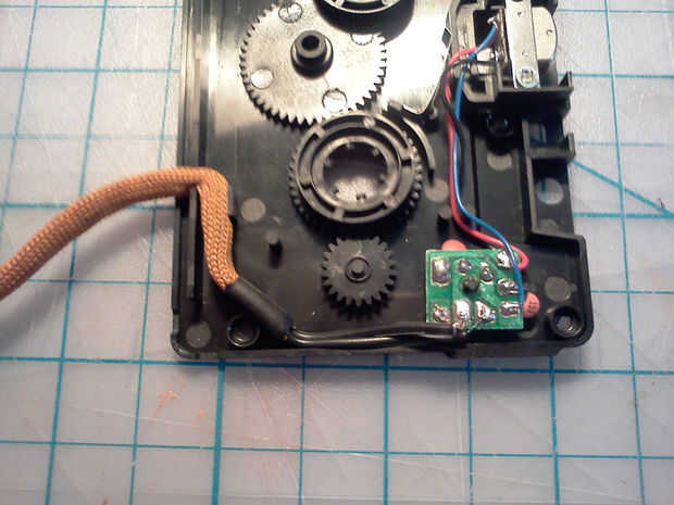 Cuando el cable es resoldered, meta cuidadosamente en el caso (tercera foto), teniendo cuidado de no dejar el cepillo de alambre contra cualquiera de los engranajes de movimiento.