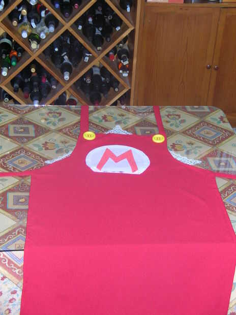 Por supuesto, si usted compra paño verde podría hacer un "delantal de Luigi" o un "delantal de Wario" con paño amarillo. Incluso un delantal de Batman, simplemente cambiando el logo!