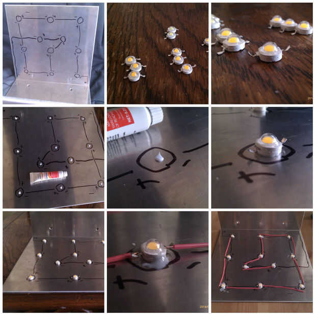 Coloque led.s sobre adhesivo térmico y los lados para mayor seguridad de epoxy.