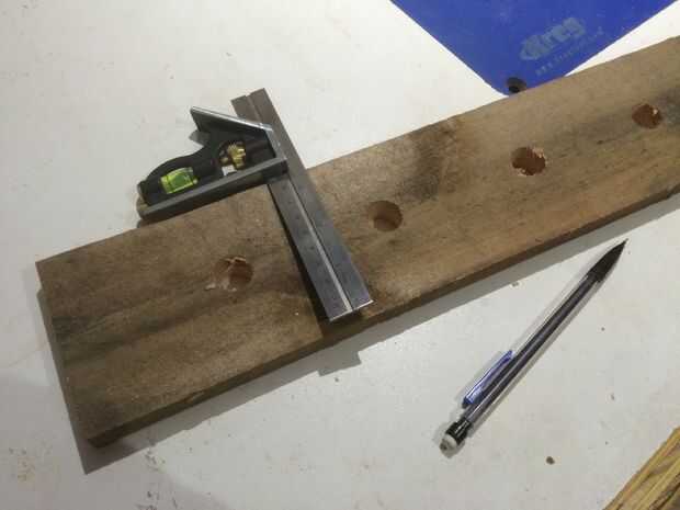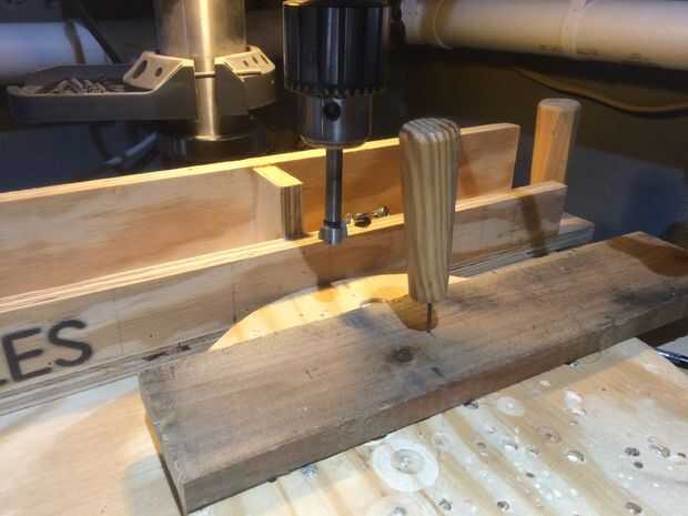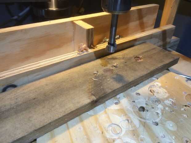 Después de marcar el centro de mi mesa, diagramado en el espacio entre orificios a lo largo de la longitud por el ojo, copas de vino reales... entonces mi TOC asumió e hice el espacio de encuentro con la ayuda de una cinta métrica. Se perforó un agujero de 3/4" en cada lugar... adivinaron... Pedacito de Forstner.