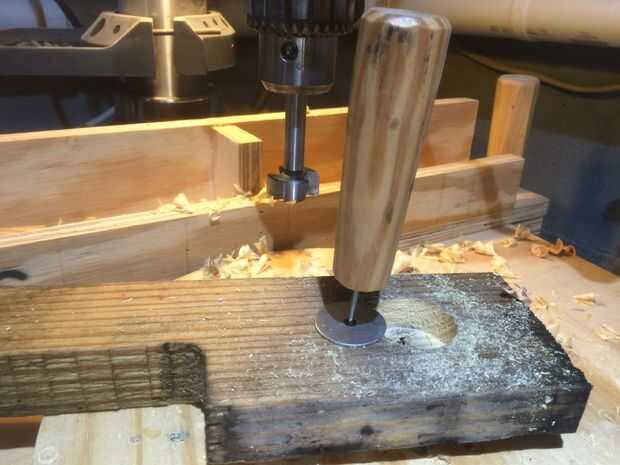 Me gusta la cerveza... así que esta cosa está mi destapador $0,05. 1 1/2" Forstner para el agujero de la botella, 1 1/4" agujero de la arandela, una arandela y un tornillo - simple.