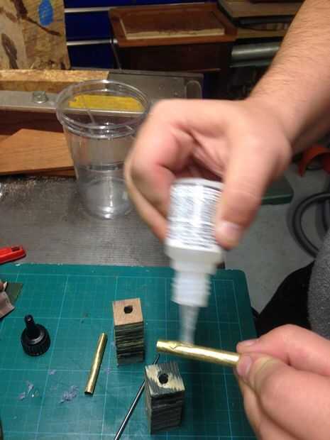 Usé un espesor mediano CA / tubos de pegamento en el agujero de taladro de espacios en blanco, así como en el bronce que vino con el kit.