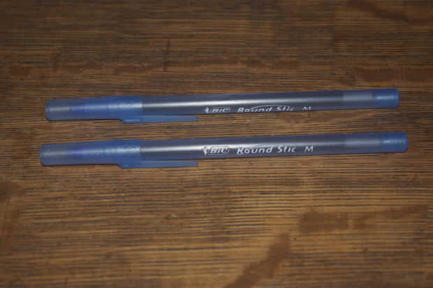 -Dos bolígrafos. Una pluma tiene que ser nuevo, pero el otro puede utilizarse (es decir, de la tinta). Elegir Bic Round Stic. No importa qué marca que usted elija, como el cañón de la pluma es el mismo diámetro a lo largo de toda la longitud (véase el cuadro por ejemplo). Además, desea asegurarse de que usted puede desmontar esta pluma, y que probablemente desee utilizar bolígrafos baratos, demasiado.